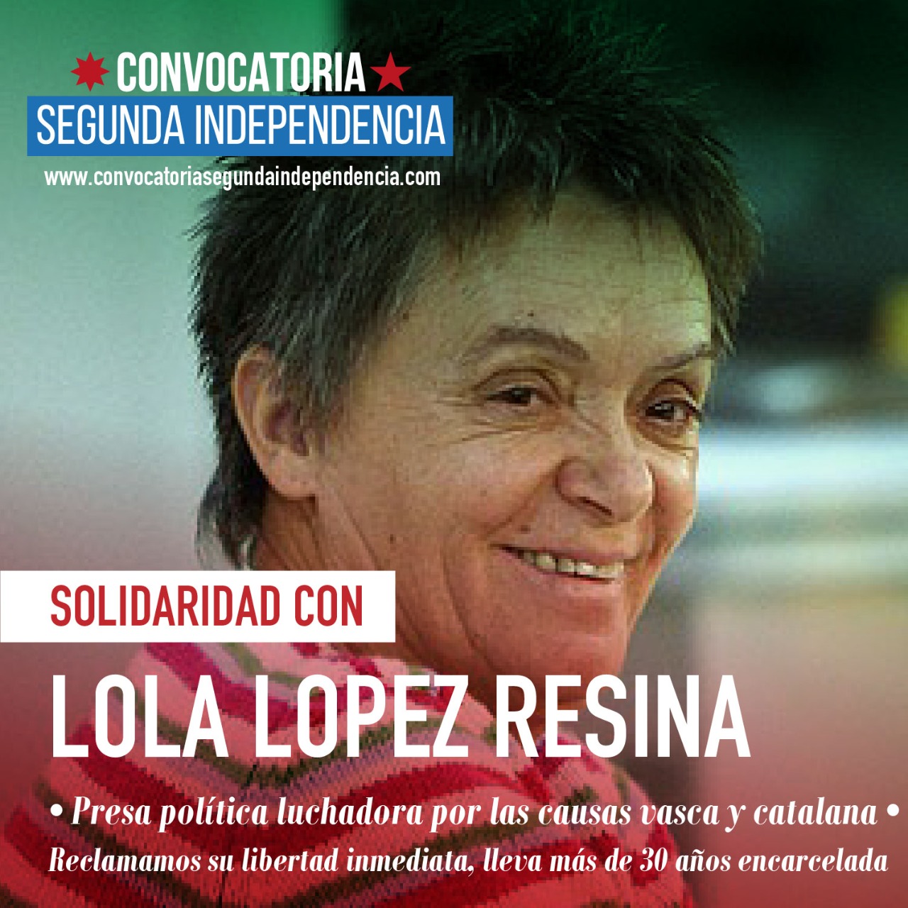 Hacemos un llamamiento a todas las organizaciones políticas, colectivos, asociaciones, personas conocidas, personas con cargo políticos y personas solidarias para que firmen y reclamen con nosotros la LIBERTAD DE LOLA, MUJER PRESA POLITICA QUE LLEVA MÁS AÑOS ENCARCELADA Y LA MUJER PRESA POLITICA DE EDAD MÁS AVANZADA DE TODO EL ESTADO ESPAÑOL.